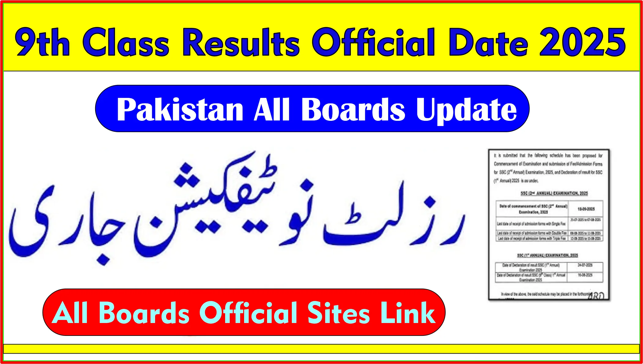 According to official announcements from major BISE boards, the 9th class result 2025 is expected to be released on 22nd August 2025. This date may vary slightly depending on the board and region, but most Punjab boards have confirmed this timeline.