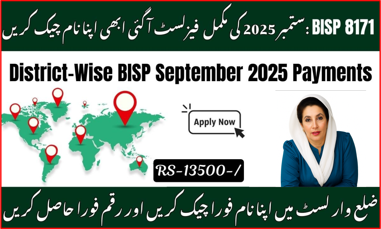 The District Wise BISP 8171 September 2025 Payments under the Benazir Income Support Programme give financial relief to eligible women in Pakistan, helping low-income families manage household expenses, school fees, and medical costs. Through timely cash assistance via bank accounts, BISP centers, and HBL Konnect outlets, this initiative provides immediate support while ensuring transparency, accuracy, and inclusivity with the 8171 SMS service, CNIC verification, and official portal. By expanding districts and phases, the government strengthens the social safety net, tackling poverty, rising inflation, and the high cost of living, while promoting women’s empowerment, independence, and educational opportunities, making a vital difference in the lives of millions of families.