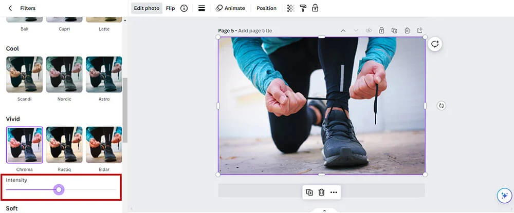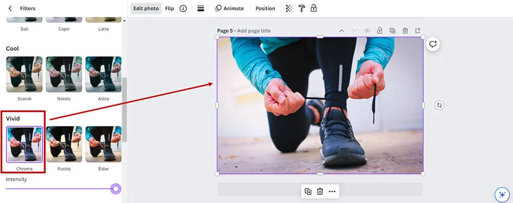 Choose the style or color effect you like, then move the sliders to adjust the colors until you’re happy with the result. It’s a quick and simple way to make your image stand out in Canva!