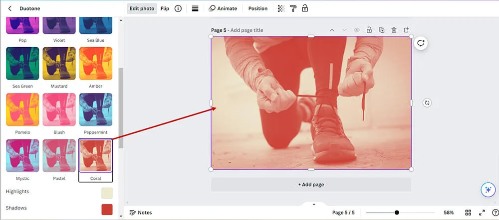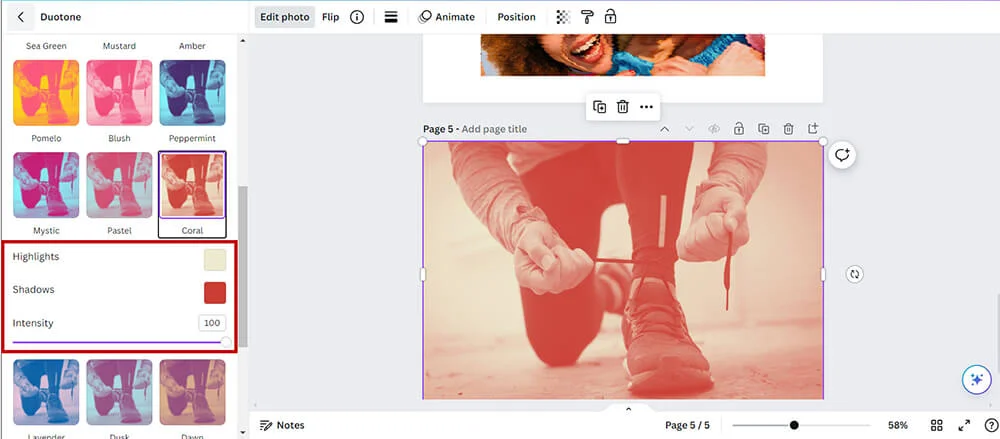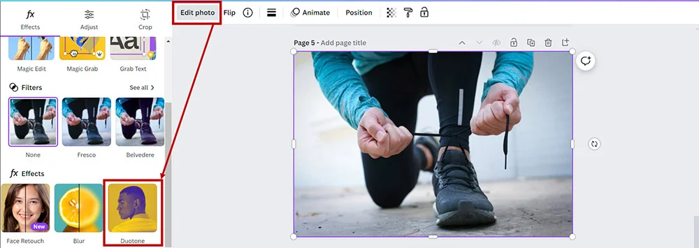 Here’s how to use the Duotone effect in Canva: