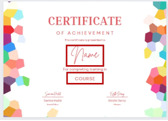 In this case, it might be a ‘Certificate of Achievement’ template with textcields where you want to insert the name and course detail