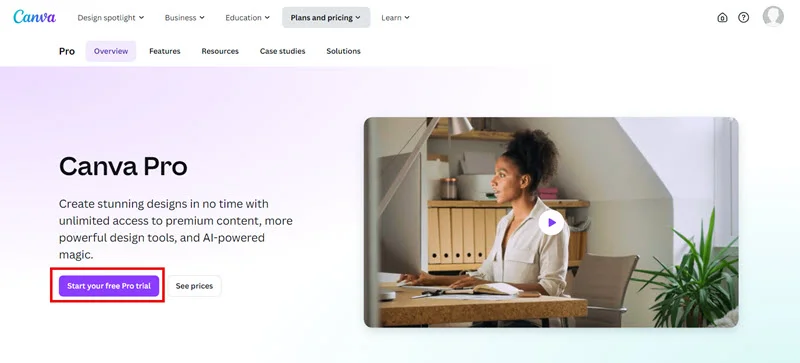 As a solo user, the easiest way to try Canva Pro for Free is through Canva’s 30-day free trial. It unlocks all premium tools so you can explore and create without limitations.