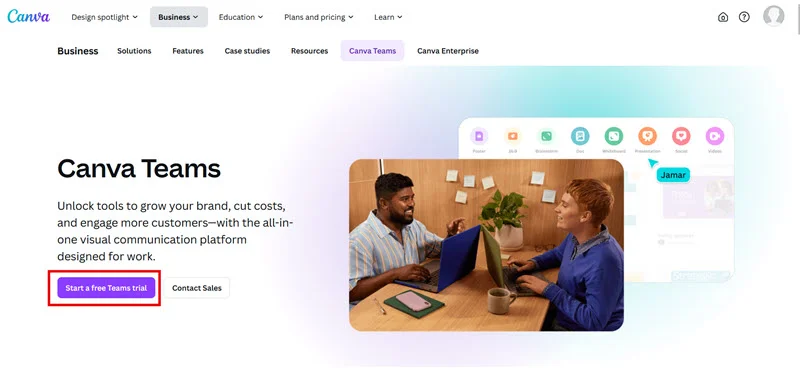For those working in groups or businesses, Canva offers a 30-day Teams trial that lets your whole team access Canva Pro for Free and collaborate seamlessly.