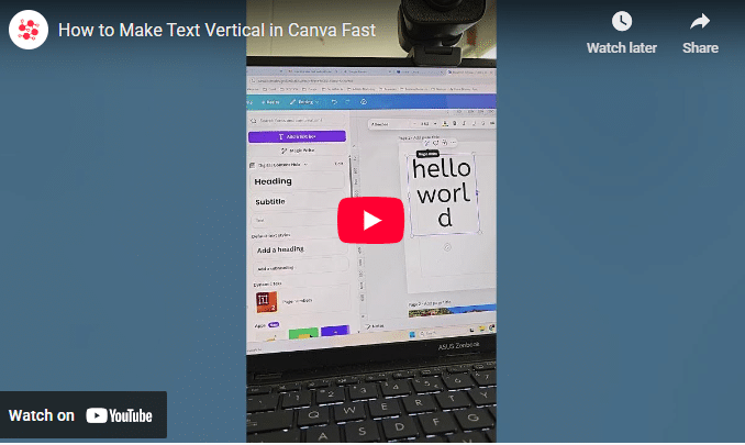 Canva also allows vertical alignment by rotating the text box instead of stacking individual letters. Here’s how: